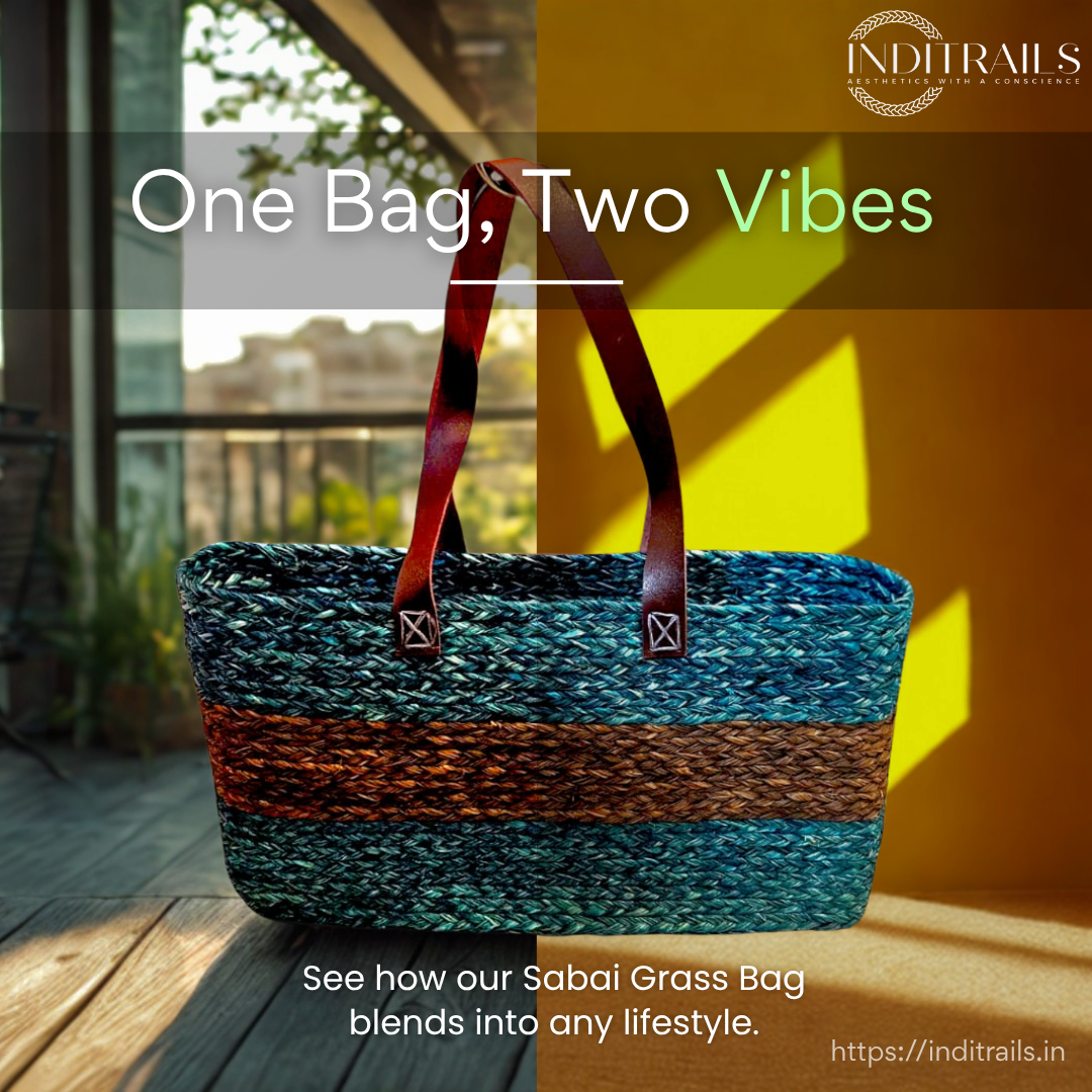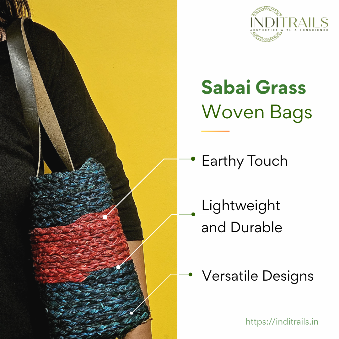 This stylish and aesthetic mesh bag is handwoven by Indian artisans and made of Sabai material.Sustainable, Earth friendly products; made of Natural Fibres and handcrafted by local artisans.